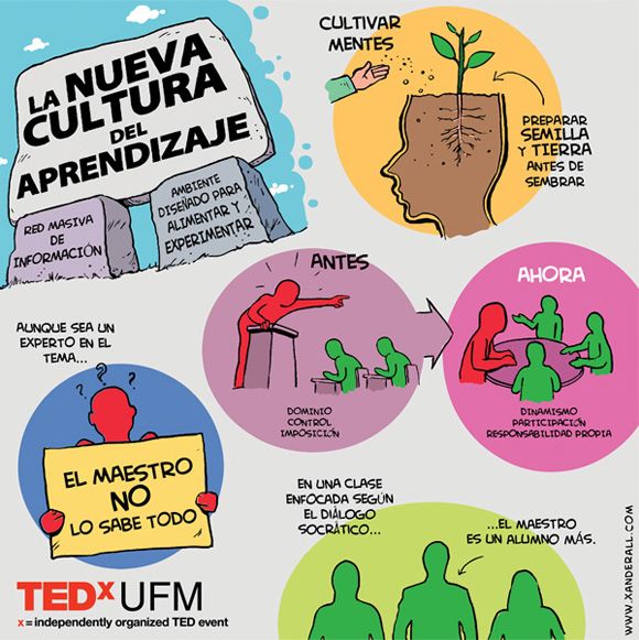 El profesor Douglas Thomas, graduado de la Universidad de Minnesota en Comunicaciones y coautor del libro “New Culture of learning: cultivating the imagination for a world of constant change” (La Nueva Cultura del Aprendizaje: cultivando la imaginación para un mundo en constante cambio) define la nueva cultura del aprendizaje como: